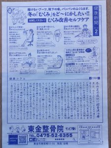 健康新聞2月号は、冬の足の症状に超音波治療です。